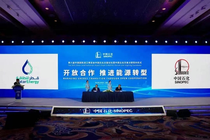 11月4日,在第六屆中國國際進口博覽會期間,中國石化與卡塔爾能源公司簽署北部氣田擴能項目二期(NFS)一體化合作協議,包括為期27年的液化天然氣(LNG)長期購銷協議和上...